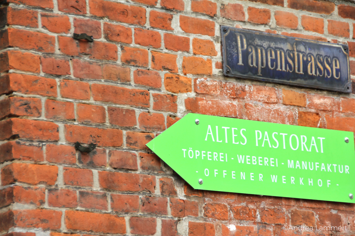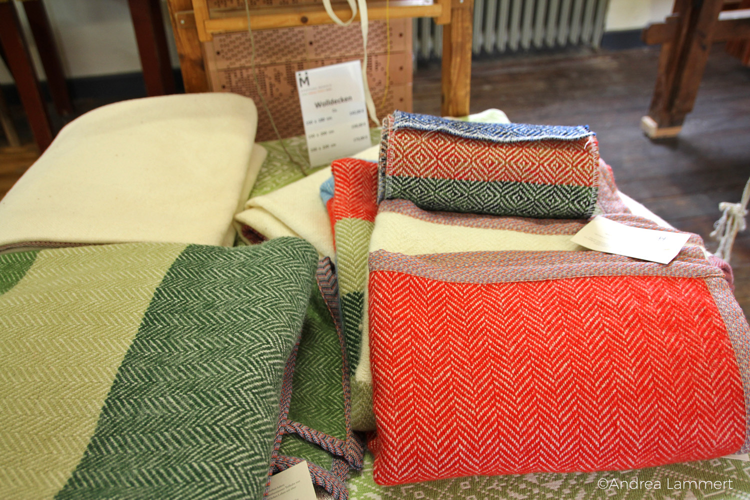 Außen standen Tonfiguren, die mich bewogen haben, einen Blick ins Haus zu werfen und ich befand mich mitten in einem Museum. Hier haben die Werkstätten der Stiftung Mensch etwas ganz Außergewöhnliches geschaffen, denn sie halten alte Handwerkstechniken aufrecht: Hier weben Menschen mit Behinderung Teppiche und Decken in alten Dithmarscher Mustern, während andere die Töpferscheibe drehen und Teller und Tassen formen.