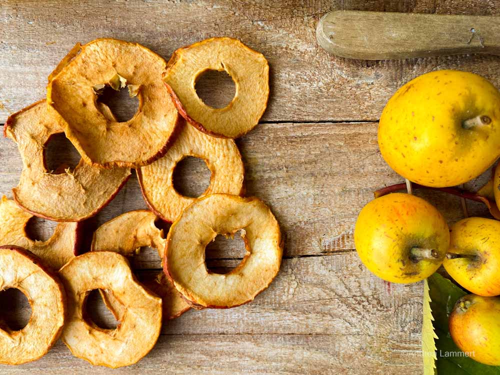 Chips sind super, oder? Es müssen nicht immer Kartoffelchips sein. Apfelchips sind meine Favoriten. Getrocknete Apfelchips lassen sich leicht selber machen – ganz knsuprig und lecker.