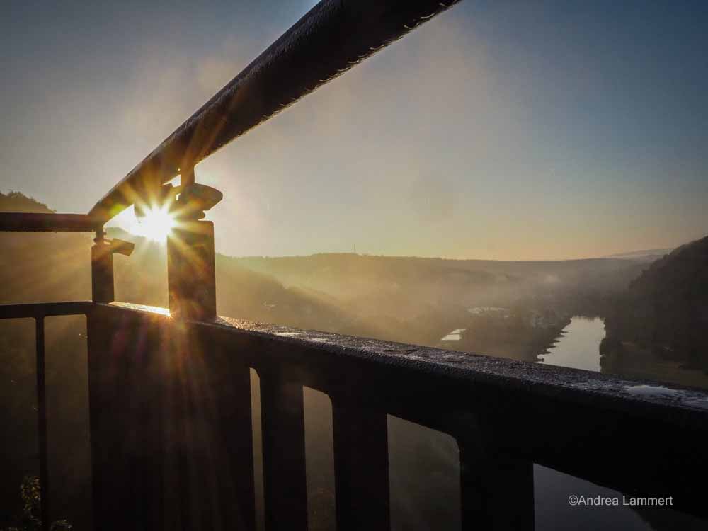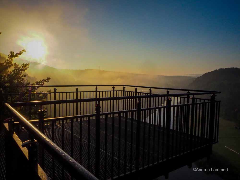Der Weser-Skywalk bei Bad Karlshafen bietet einen einmaligen Ausblick auf das Wesertal und die Hannoverschen Klippen. 80 m über der Weser ist es frühmorgens am allerschönsten.