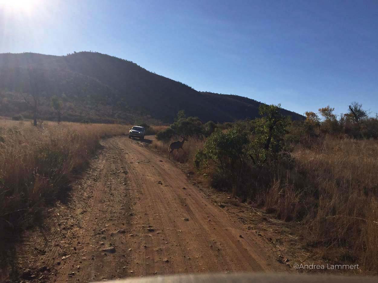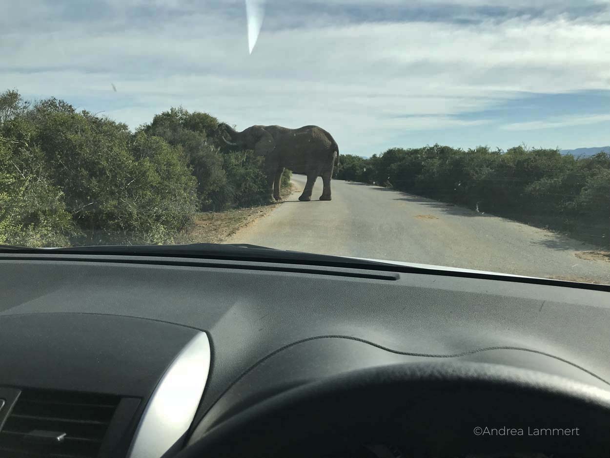 Tiere: Es müssen ja nicht gleich Elefanten sein, wie bei uns, mit Tieren muss man beim Fahren in Südafrika immer rechnen. Sei als Pavian es auf der Straße oder als Käfer, Tiere haben grundsätzlich Vorfahrt. Und wie das so ist: Sie tauchen auch immer plötzlich aus dem Busch auf.
