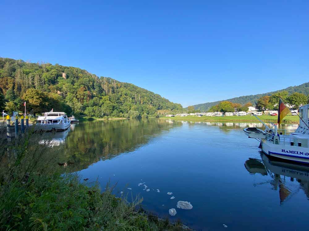 Bad Karlshafen eignet sich nicht nur gut für einen Campingurlaub, sondern lädt auch zum Wandern ein. Der Rundweg nach Würgassen und zurück über die Hannoverschen Klippen ist eine prima Tour, aber auch der Weg zum Weser-Skywalk und dann über die Wüstung Schmeesen mit den Ruinen eines alten Dorfes lohnt sich.
