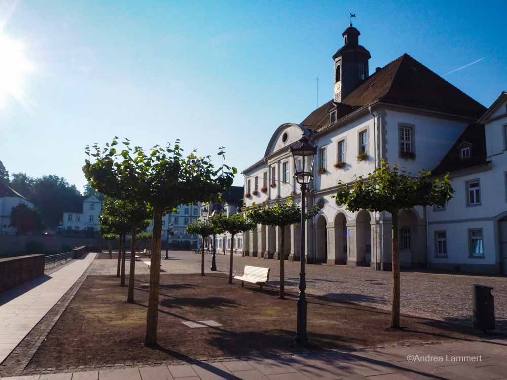 Es stammt aus den Jahren 1715-1718 und wurde als Packhaus und auch als Unterkunft für den Landgrafen Karl von Hessen genutzt, wenn er zu Besuch nach Bad Karlshafen kam. Er residierte im Obergeschoss des Gebäudes, das wie ein Barockschloss aufgebaut ist. Mit seinem Walmdach und dem Laubengang geht von dem Bau eine Strahlkraft aus. Vor allem aber, weil sich davor nicht nur ein großer Platz aufbaut, sondern weil direkt vor dem Rathaus ein Hafenbecken liegt. Dort wollte der Landgraf einst ein ambitioniertes Vorhaben durchsetzen und einen Kanal bis nach Kassel bauen lassen. Daraus ist leider nichts geworden, aber der Hafen ist geblieben und ziert heute die Stadt.