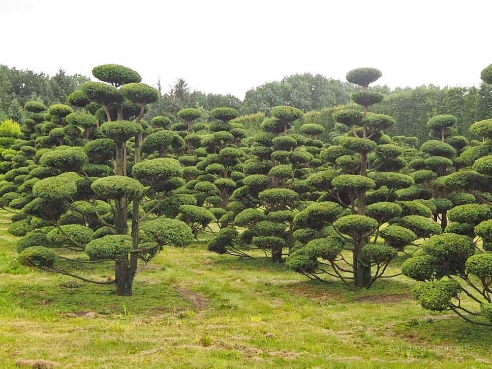 Wer durch das Ammerland rund um Bad Zwischenahn fährt, findet eine Landschaft, wie sie wohl einmalig ist in Deutschland: Große Bäume stehen dort hübscher als in manchem Park und bilden lange Sichtachsen. In Pyramiden geschnitten oder nach fernöstlicher Art im typischen Wolkenschnitt. Manche Buchsbäume bilden Äpfel oder Birnen und einige sogar Mickey-Maus-Köpfe. Riesige Torbögen aus Buchen kann man hier ebenso komplett kaufen wie 50 Jahre alte Eichen.
