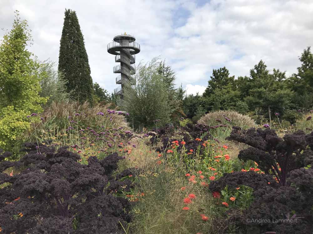 Ob der vertikale Garten an der Hauswand am Eingang, der rote Grünkohl oder die als Laube geschnittenen Buchenhecken – hier zeigen die Gärtner der Region, was sie drauf haben. Und das ist eine ganze Menge. Wer siche inen Überblick verschaffen möchte, klettert auf den Aussichtsturm. Ansonsten einfach durchgehen, staunen, schnuppern und genießen. Einmalig ist die Rhododendrenpracht im Park der Gärten, Menschen kommen im Frühjahr von weit her, um die Blüten zu bestaunen.