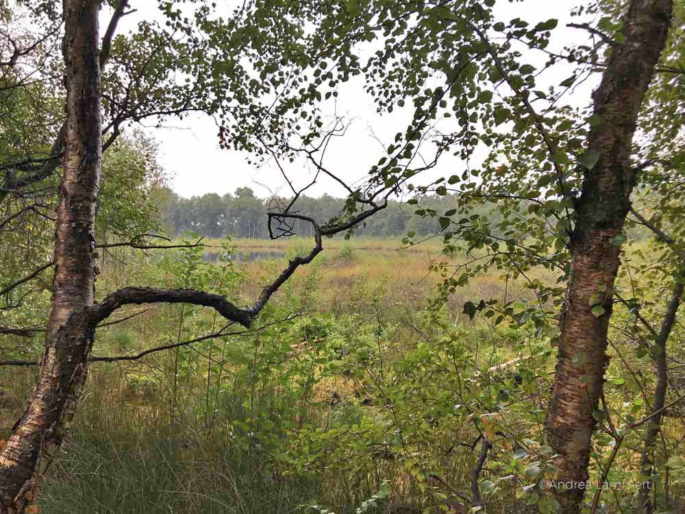 Ich bin ja lieber in der Natur, als in der Stadt, und so zog es mich zum Engelsmeer, dem Moorsee bei Bad Zwischenahn. Die Landschaft dort erinnerte mich teilweise sehr an die Lüneburger Heide mit ihren Birken und sandigen Böden. Einige der Bäume wachsen knorrig. An den See kommt man schlecht ran, weil die Wanderwege vorher aufhören und Buschwerk das Wasser verdeckt. Doch der Spazierweg entlang der verlandeten Zone lohnt sich. Am Engelsmeer.