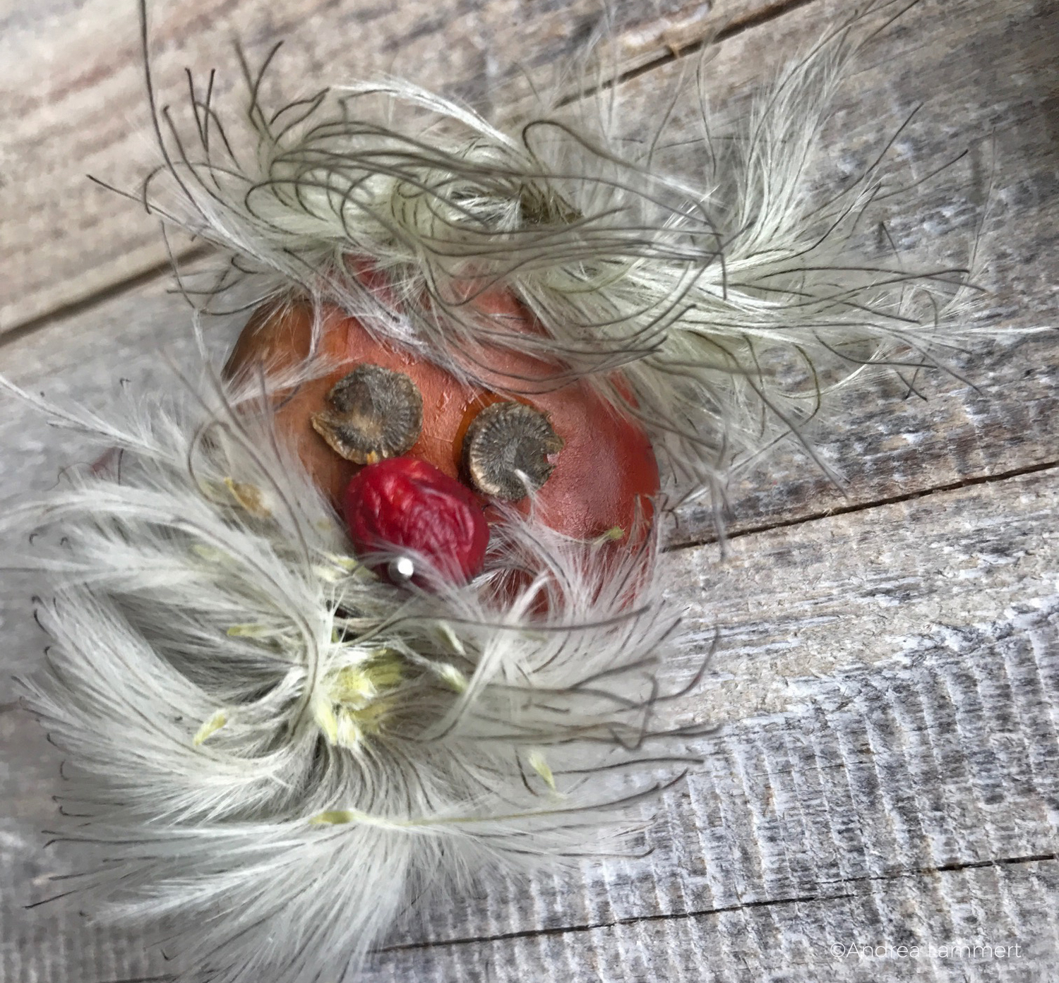 - Clematissamen oder Herbstanemonensamen (für den Bart)