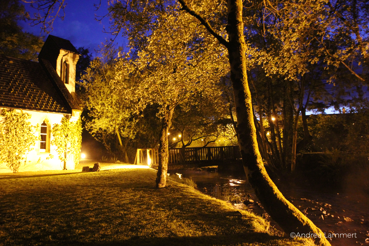 Nicht nur das begeistert mich, sondern die ganze Anlage, die so wunderschön gestartet ist. Immerhin ist das Restaurant eingebettet in die Bio-Hotelanlage Brook Lodge, eigentlich ist es ein kleines Dorf bestehend aus mehreren Häusern. Hühner und Gänse laufen über die Wiesen, ein kleiner Bach gurgelt am Ende des Grundstücks durch einen wilden Wald. Es gibt sogar eine eigene, kleine Kapelle – nicht geweiht, damit jede Religion hier feiern kann. Von Felssteinmauern geschützt liegen die Gemüsebeete, in denen Artischocken, Rhabarber, Stachelbeeren gedeihen und ganz versteckt befindet sich ein großes Schwimmbad mit einem Spa. Landurlaub, wie er sein muss: Ich sehe, wo mein Frühstücksei herkommt und die Zeitung liegt morgens vor meinem Zimmer.