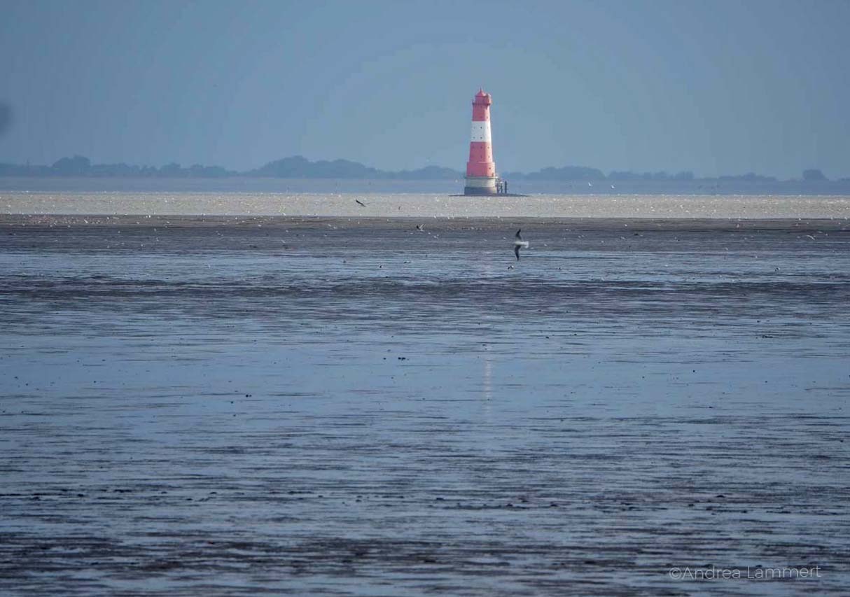 Der Leuchtturm Arngast ist von Dangast aus zu sehen. Wer näher rankommen möchte, bucht eine Fahrt mit dem Bäderschiff Etta von Dangast oder eine Wattwanderung. Sich allein auf den Weg zu machen, ist zu gefährlich. Wer Glück hat, sieht vom Ausflugsdampfer aus dann auch Seehunde.