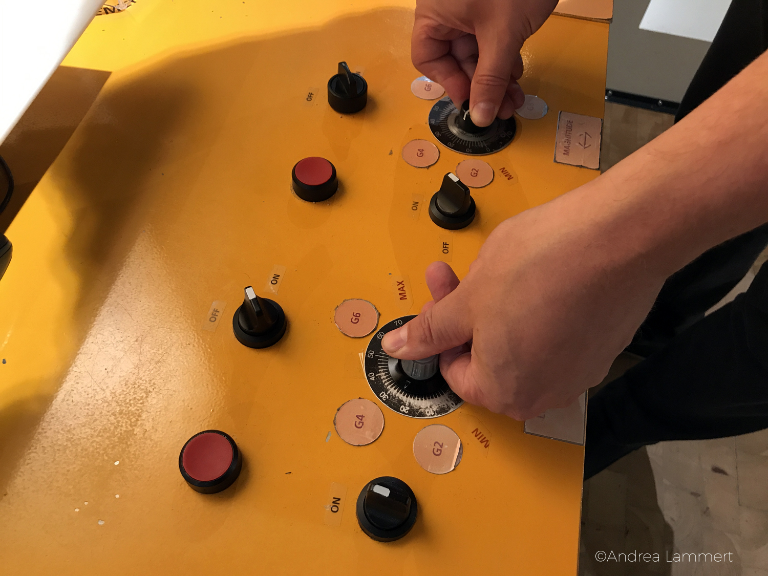 Zunächst wackelt der Raum ganz sanft, die kleine Hängelampe zittert und es vibriert kaum merklich. Doch schon bald wird es deutlicher und bei 6,3 Richterskala-Stärke würde in mir wahrscheinlich Panik aufkommen, denn alles fühlt sich an wie ein Karussell. Und es ist nicht nur so, dass die Erde zittert, sie rüttelt auch noch, so als säße man auf einem Teller, der sich mal nach rechts, mal nach links dreht. „Das sind die vertikalen Plattenbewegungen“, erklärt der Mitarbeiter der DASA. „Die vergessen die meisten Menschen, wenn sie an Erdbeben denken.“
