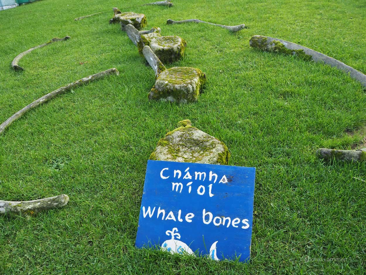 In einem anderen Haus fertigt Con Fischernetze an. Fingerfertig führt der 70-Jährige sein Webschiffchen durch die Ösen und schafft Stück für Stück des Netzes. Die Menschen gehen noch immer nach Hummer, Makrelen und Lachs fischen. Im Garten deuten Walknochen auf die Vergangenheit als Walfänger hin.