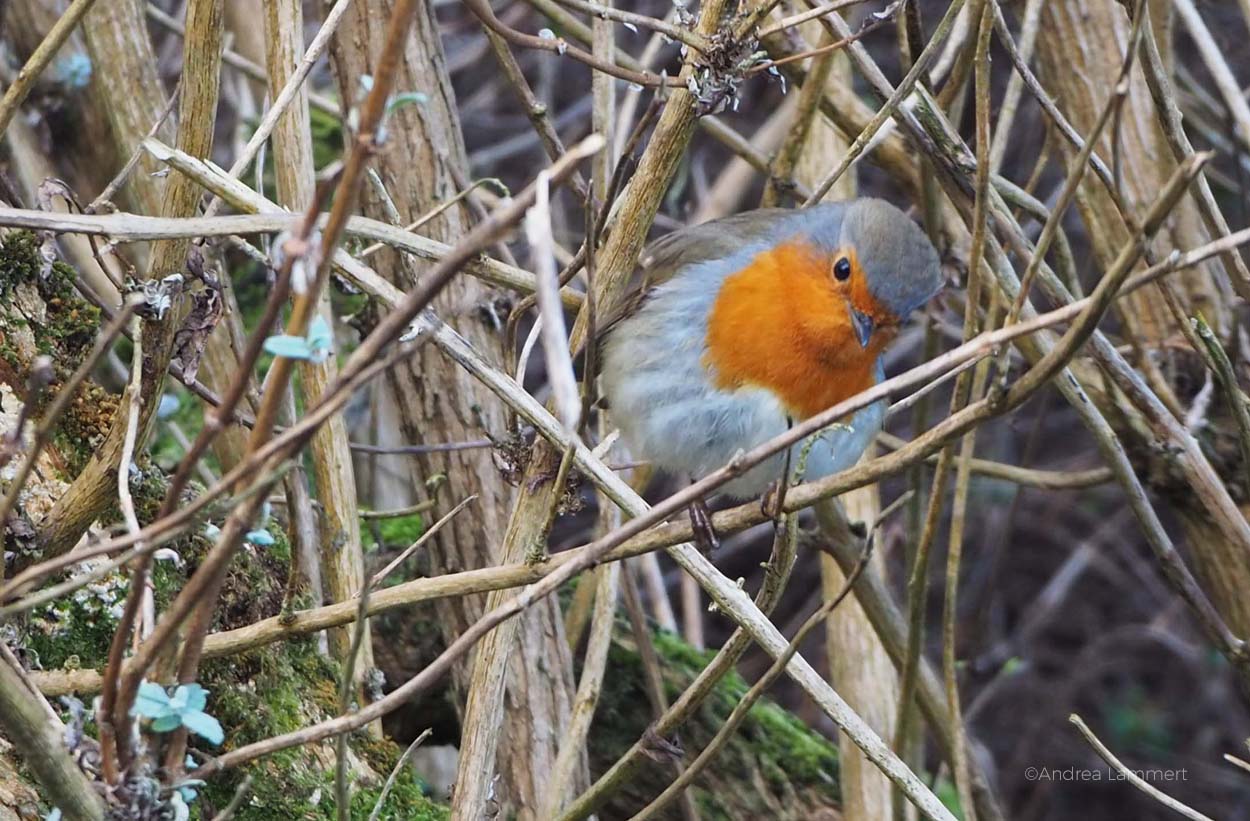 David führt uns durch den angrenzenden Garten, in dem sich nicht nur die Heckenschule, sondern viele kleine Schildchen befinden. Typische Feentüren aus Irland. Fairy Doors. Dass des die kleinen Wesen gibt, erzählt er ganz selbstverständlich. Und wie zum Beweis, flattert in dem Moment ein Rotkehlchen zu uns und beobachtet uns mit durchdringendem Blick.