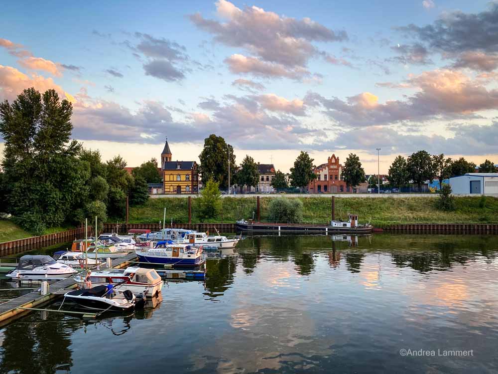 Völlig überrascht hat mich Aken. Hatte ich vorher nie gehört den Ort und musste gleich an sein Pendant in Dithmarschen denken – Wacken. Doch Aken ist ein kleiner, verschlafener Elbeort. Auch dort gibt es eine doppeltürmige Kirche, St. Marien, die die Stadt dominiert. Die kleine Innenstadt ist hübsch, aber auch irgendwie nicht so lebendig, wie man sich das so wünscht,, dafür ist am Ufer der Elbe viel mehr los. Dort befindet sich ein schöner Campingplatz, ein kleiner Hafen und ein Restaurant, das irgendwie zum Szenetreffpunkt der Akener geworden ist.