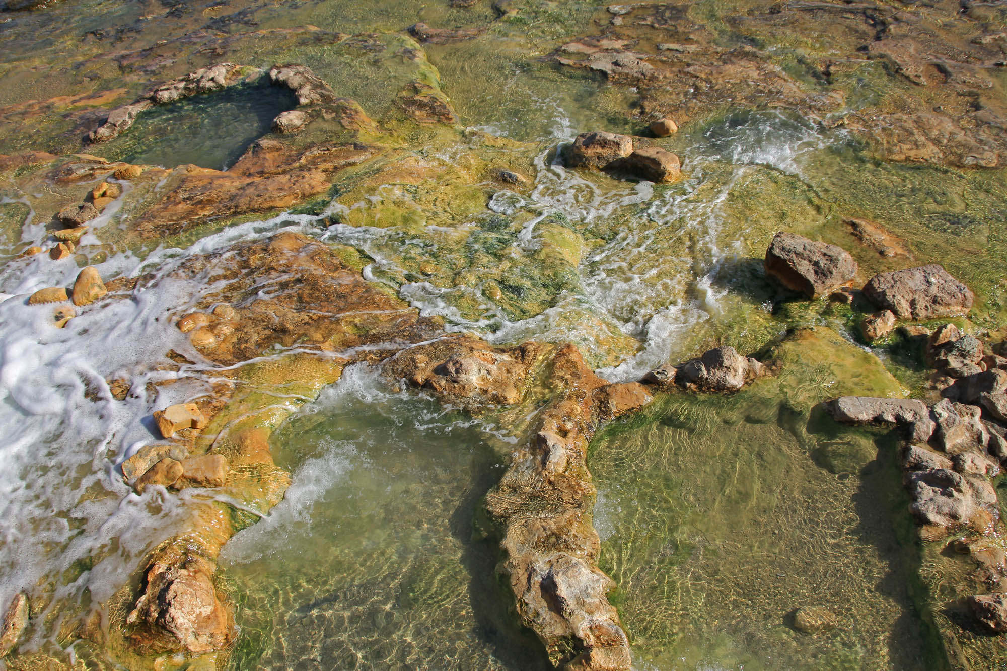 Marc Aurel und Konstantin der Große waren dort schon auf Kur: Mehr als 80 heiße Quellen sprudeln im Nordwesten der Insel aus dem Boden. An manchen Tagen hüllen sie die Straße in Nebel, immer aber sorgen sie auch im Meer für wärmere Grade als an anderen Stellen der Insel. Es ist einer der schönsten Plätze, denn in den kleinen Naturpools lässt sich herrlich sitzen und von unten brodeln die Quellen. An einigen Stellen kommt das Wasser auch wie eine Dusche aus Leitungen und Rinnen am Felsen und fällt von dort wie ein Wasserfall direkt ins Meer.