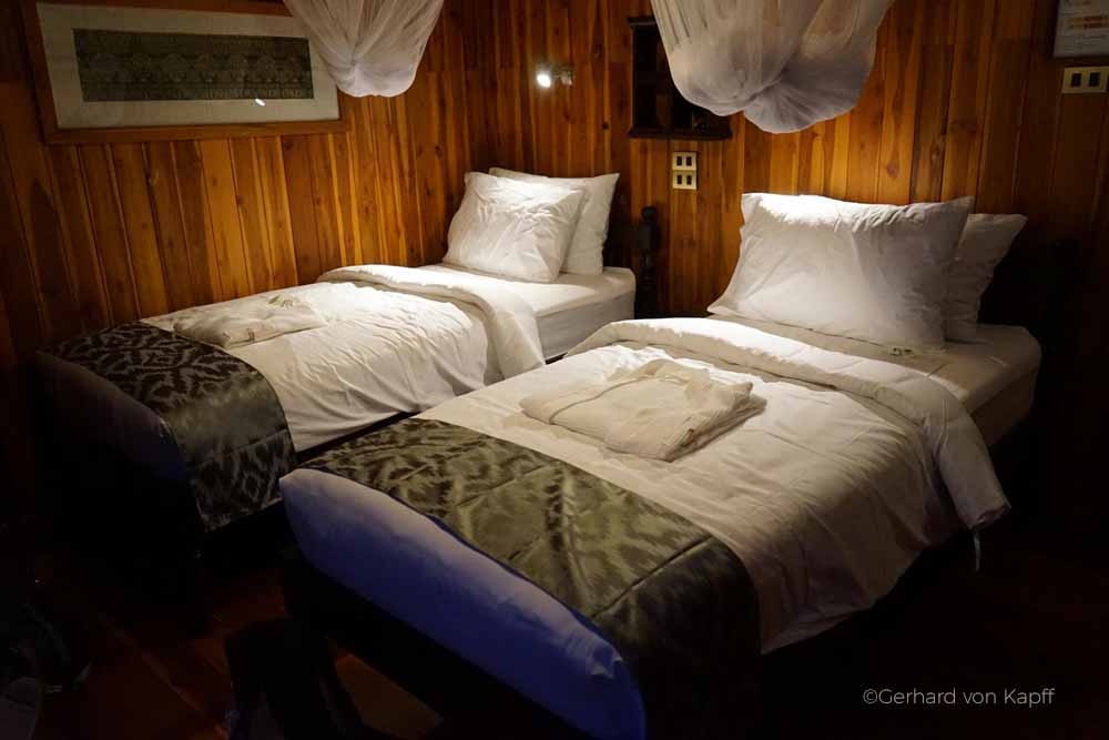 Wenn schon Entschleunigung, dann muss sie schnell gehen. Zumindest für uns Deutsche. Doch bei einer Flussfahrt wie dieser bleibt gar nichts anderes übrig, als zügig das Tempo zu reduzieren. Auf dem Mekong, einem der zwölf längsten Flüsse der Erde, ist Langsamkeit Teil des Programms. Nur 15 Kabinen hat die Mekong Pearl, auch das garantiert, dass hier niemals die Hektik eines Kreuzfahrtschiffes aufkommen wird. Maximal 29 Gäste sind an Bord, die sich auf zwei Decks verteilen.