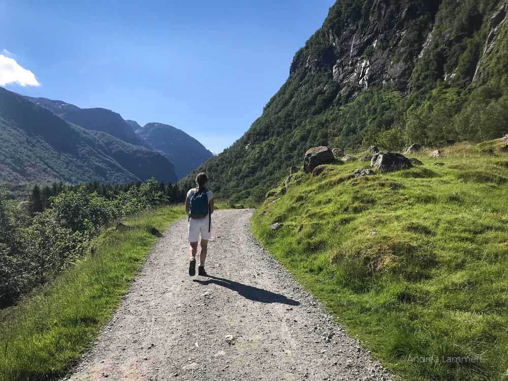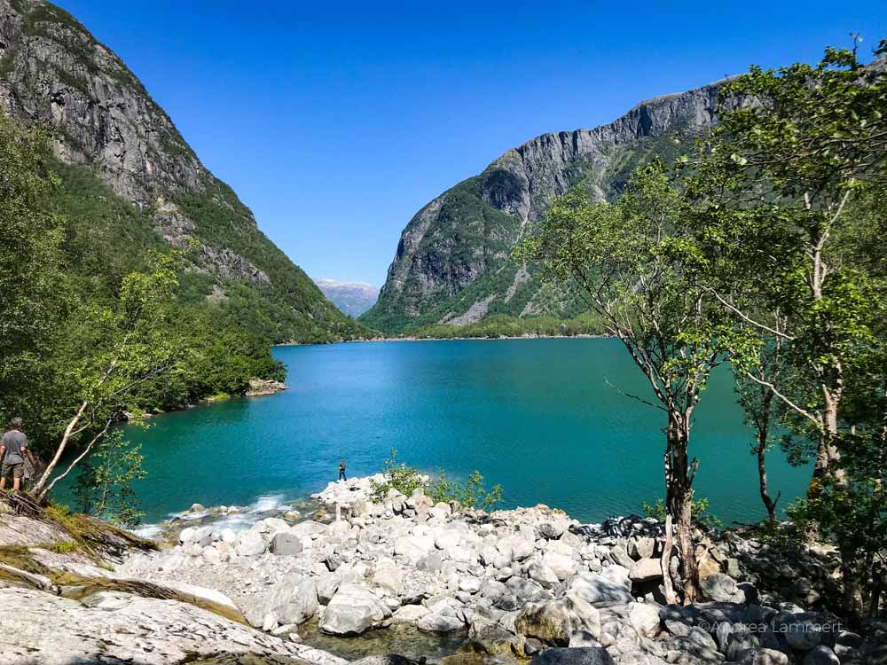 Wer die Wanderung zum Bondhusbrea-Gletscher also wagen will, sollte sich mit gutem Kartenmaterial ausrüsten und möglichst schon früh an diesem Uferstück des Sees sein. Wir waren einfach zu spät dran und sind dann wieder umgekehrt, um unsere Strecke durch das Bundhusdallen zurückzulegen. Letztendlich war es gut, dass wir umgekehrt sind, denn die Wanderung war anstrengender als gedacht und wir waren froh, als wir wieder auf dem Parkplatz ankamen.