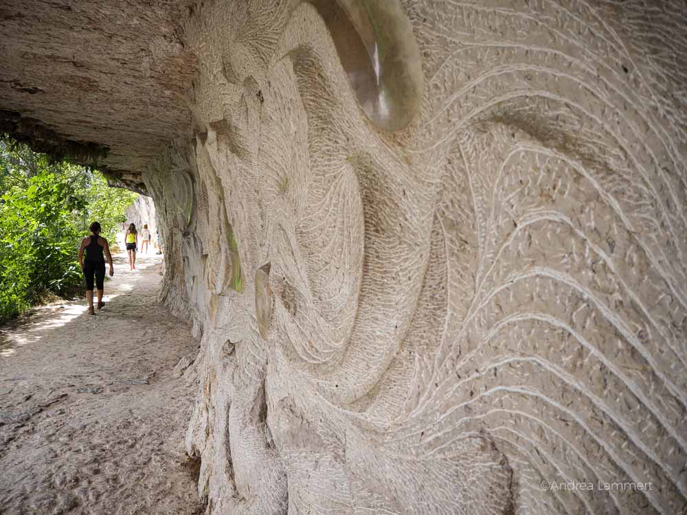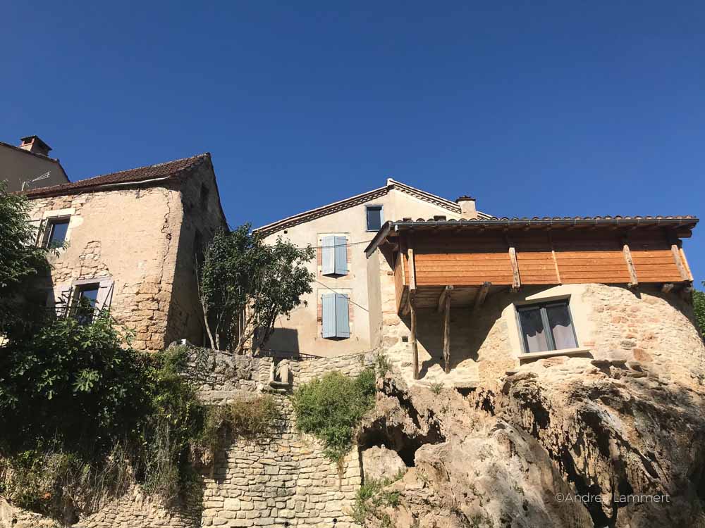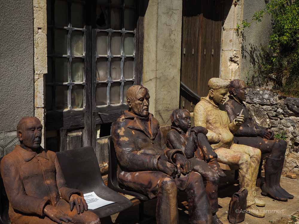 Der Bildhauer David Monnier hat einen Teil der Wand mit seinem Kunstwerk verziert. Sehenswert im Ort ist zudem das Château des Anglais, eine in den Felsen hineingebaute Wehranlage, die ich aber nicht fotografiert habe.