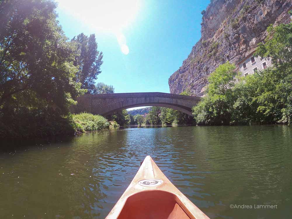 Die Paddeltour auf der Célé dauert 3-4 Stunden und ist eine wirklich schöne Tour. Der Höhepunkt ist natürliche ide Rutschpartie mit dem Kanu bei Cabrerets, aber auch sonst ist es landschaftlich einfach großartig, an den Steilhängen vorbei zu paddeln und manchmal sogar kleine Höhlen zu entdecken. Unbedingt erforderlich sind aber Kopfbedeckung, Schwimmschuhe, Sonnenmilch, Wasser und Proviant an Bord. Das würde ich jederzeit noch einmal buchen.