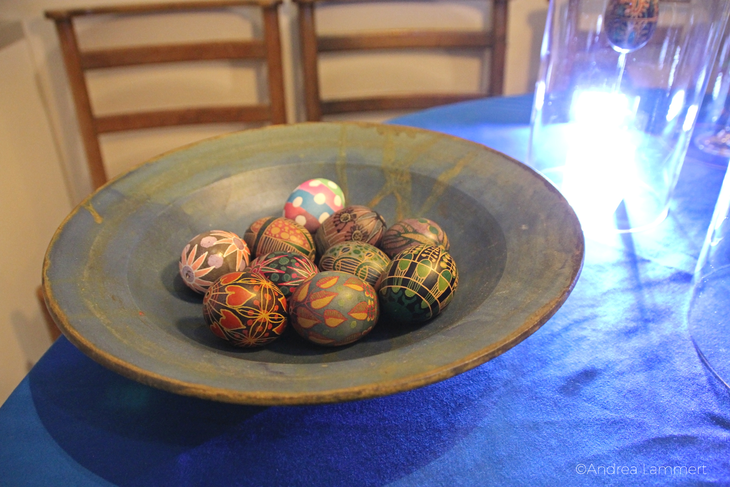 Sie sind wunderschöne, kleine Kunstwerke, an denen sich mich gar nicht sattsehen kann. Und erst diese polnischen Ostereiermuster. Dass sie auch noch eine Bedeutung haben, darauf wäre ich nie gekommen. „Doch! Es war in Polen lange Tradition, sich zu Ostern bemalte Eier zu schenken und die Muster beinhalteten Botschaften.“