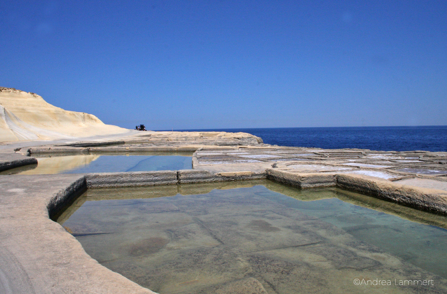 Von hier aus lässt es sich weit schauen. Fast bis aufs Meer. Und – Ġgantija und all seine Fans mögen mir verzeihen – eben dort liegt für mich der schönste Platz der Insel. Es ist nicht der Kraftort, sondern es sind die alten Salinen und ihre Umgebung. Die feine Salzkruste auf den alten Felsbecken hat ihren ganz eigenen Zauber, Tausende von Kristallen haben sich hier gebildet. Doch das gibt es an vielen Küstenorten.