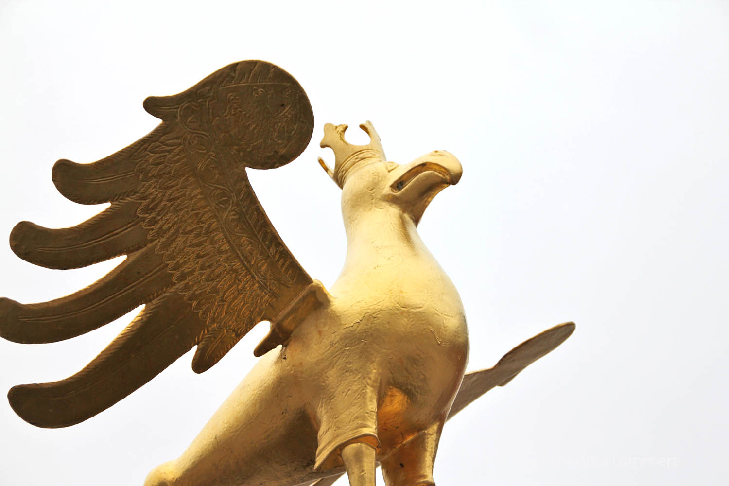 Besonders gut gefallen hat uns der Marktplatz – vor allem der goldene Greif, der auf dem Brunnen thront.