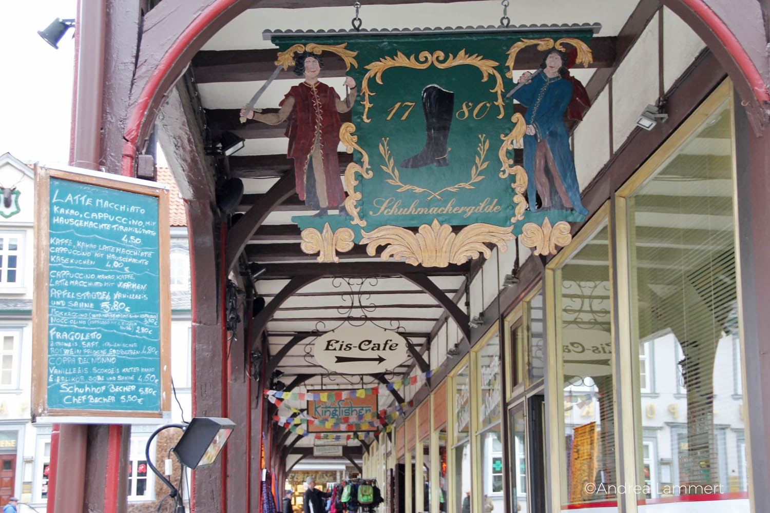 Genug drinnen gewesen, so viel Zuhören muss Bewegung entgegen gesetzt werden. Nicht nur die Kinder brauchen das, ich atme auch tief durch, als wir durch Goslars Straßen spazieren. Manches ist herrlich altmodisch, etwa die Andenkenläden.