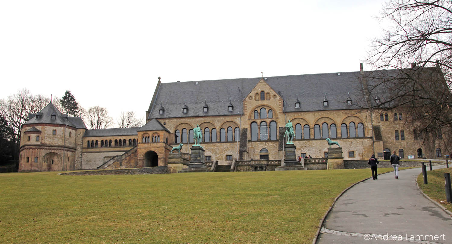 Erze und Kupfer des Bergwerkes Rammelsberg haben Goslar nicht nur reich, sondern strategisch auch derart bedeutsam gemacht, dass es Sitz der deutschen Kaiser wurde. Davon zeugt heute die Kaiserpfalz. Dorthin musste ich schon als Kind – die Kaiserpfalz hatte ich irgendwie ganz anders in Erinnerung, als ich sie das erste Mal wiedersah. Viel größer und viel weiter außerhalb der Stadt gelegen, wahrscheinlich waren meine Beine einfach zu kurz und der Gang kam mir so elend weit vor. Ob das wohl später meinen Kindern auch so gehen wird? Auf jeden Fall beeindruckt es sie, das das Gebäude älter als 1000 Jahre ist.