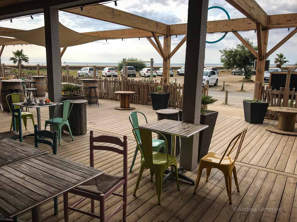 Fündig geworden sind wir im Le Cers am Pole Nautique von Gruissan, dort gab es nicht nur Pasta, sondern auch vegetarische Burger. Zudem sitzt man dort gut und kann schön aufs Wasser blicken. Beliebt ist auch das benachbarte Paparazzo, dort haben wir aber nicht gegessen, aber vegetarisch haben sie zumindest auch im Angebot. Die Bar des Sunrise-Hotels ist auch ein schöner Platz zum Sitzen, dort gibt es aber hauptsächlich Tapas und Fisch.