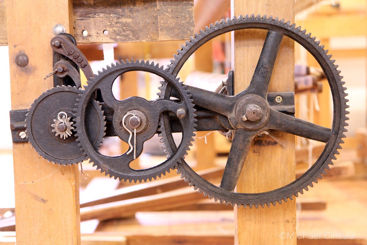 „Wir weben hier wie früher“, sagt Nele Knierim. Die Arbeit in der Weberei ist für die Textildesignerin ein Traumberuf: „Diese wunderbaren Farben, mit denen wir arbeiten“, schwärmt sie. „Und wie stolz man ist, wenn das Stück fertig ist.“ Doch bevor eine Decke gewebt wird, müssen die Frauen an den Schärbaum. Das große Gestell gleicht einer riesigen Spule, auf der der Faden aufgerollt wird. „„Wir müssen den Webstuhl neu einrichten und die Kette spannen. Damit wir das können, ohne dass etwas reißt oder vertüddelt, müssen wir zunächst die Fäden auf den Schärbaum spannen“, erklärt Textildesignerin Nele Knierim. Hier wird deutlich, dass Weben eine Tätigkeit ist, für die man früher gute Nachbarn brauchte, denn um die meterlangen Fäden auf den Webstuhl zu spannen, müssen viele Hände mit anpacken.