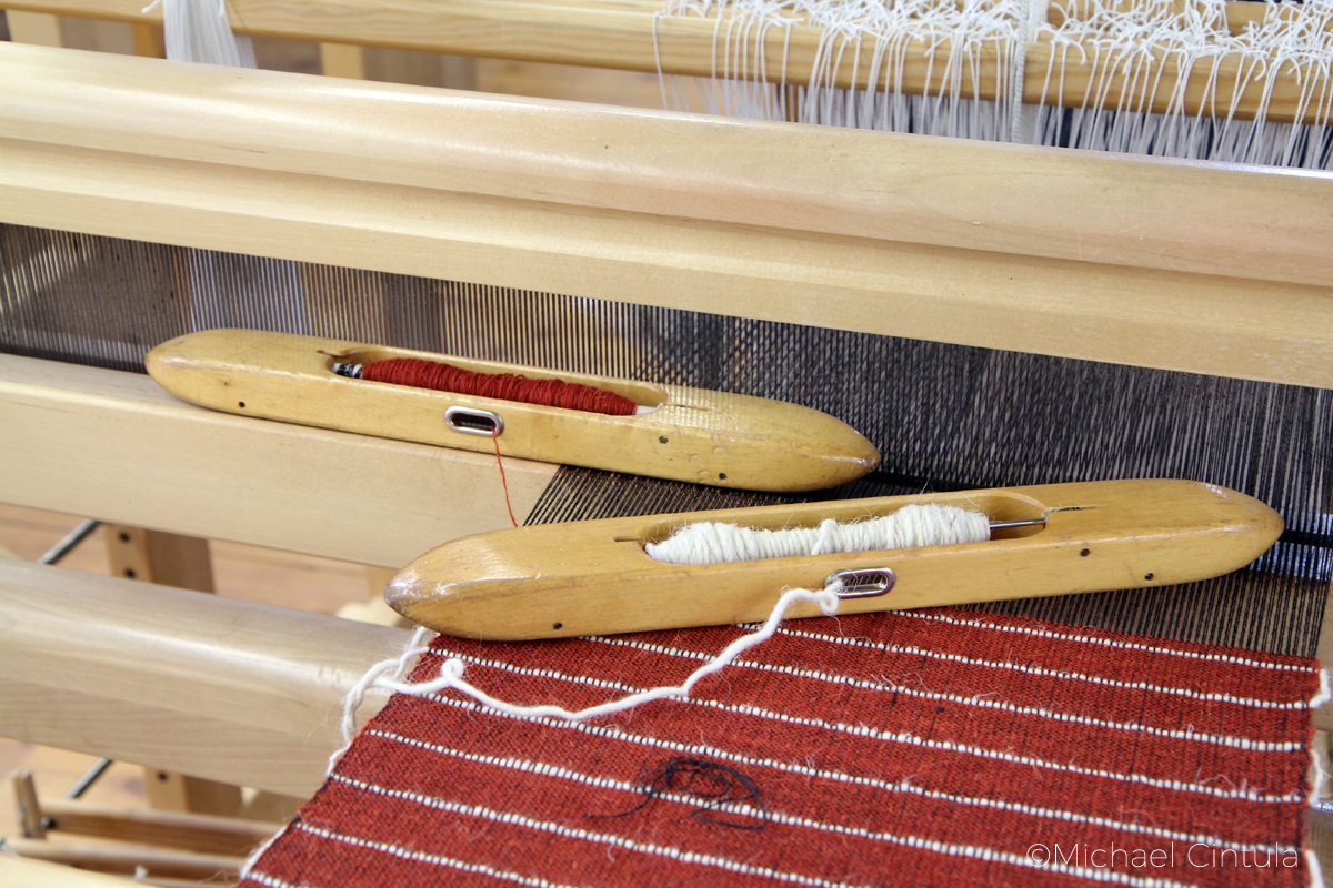 Es duftet nach Lanolin und Wolle in der Handweberei Rosenwinkel. Sonnenlicht flutet auf den hellen Holzboden und eine gespannte Konzentration liegt in der Luft. Unter dickem Gebälk des Dachgeschosses der alten Zuckerfabrik klappert es geschäftig. Während eine Weberin konzentriert Fäden durch die Litzen zieht, bewegt eine andere im gleichmäßigen Tempo die Tritte, hebt die Schäfte und schießt die Fäden gleichmäßig durchs Fadengewirr zu einem Teppich. Wie bei einer Pianistin sind ihre Füße ständig in Bewegung, treten rhythmisch die langen Tritte, die mit einem Schlag 800 Fäden heben und senken. Mit dieser Technik haben die Menschen schon im Mittelalter Decken gefertigt.