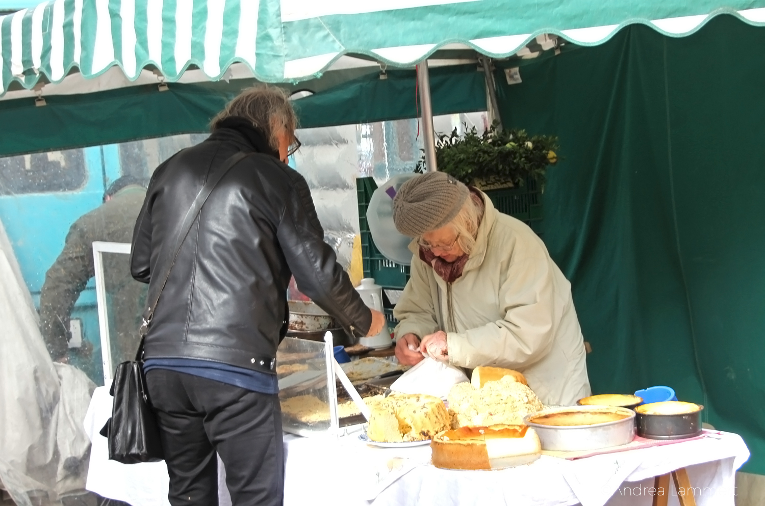 Obst und Gemüse sind das eine, aber der Lindener Wochenmarkt ist vor allem für seine Spezialitäten bekannt. An den Ständen mit Eselsalami und Co gehe ich schnell vorbei, hin zum Lüneburger Nudelkontor, die hier frische Pasta verkaufen. Fast nebenan am kleinen Kaffeewagen tummeln sich die Menschen an Stehtischen und halten Schwätzchen. Von hier aus fällt der Blick auf eine kleine Seitenstraße, in der eine ältere Dame an einem kleinen Stand selbstgebackenen Kuchen verkauft, welch eine wunderbare Idee.
