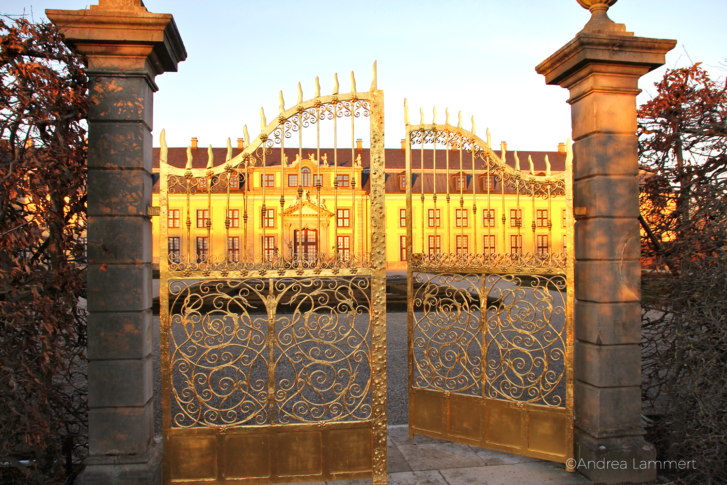 Ja, gen Abend haben wir derart goldenes Licht hier oben im Norden – ich habe nicht mit Filtern oder so nachgeholfen. Aber nicht nur das Licht ist golden, vor allem eines hat mich fasziniert – das goldene Tor im Großen Garten von Herrenhausen. Es befindet sich rückseitig des Galeriegebäudes und erinnert mich ein wenig an Versailles, wenn es dort so halb offen lockt. Unbedingt ein Hannover-Tipp – vor allem für schöne Fotos im Abendlicht, die Sonne steht dann perfekt.