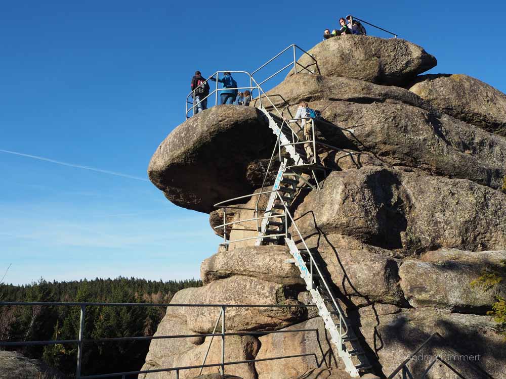 Leitern erleichtern das Hochkommen auf den Ottofelsen.