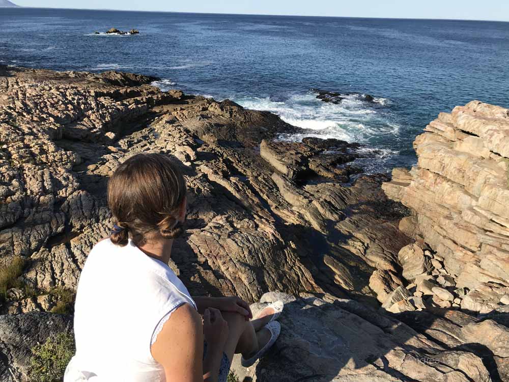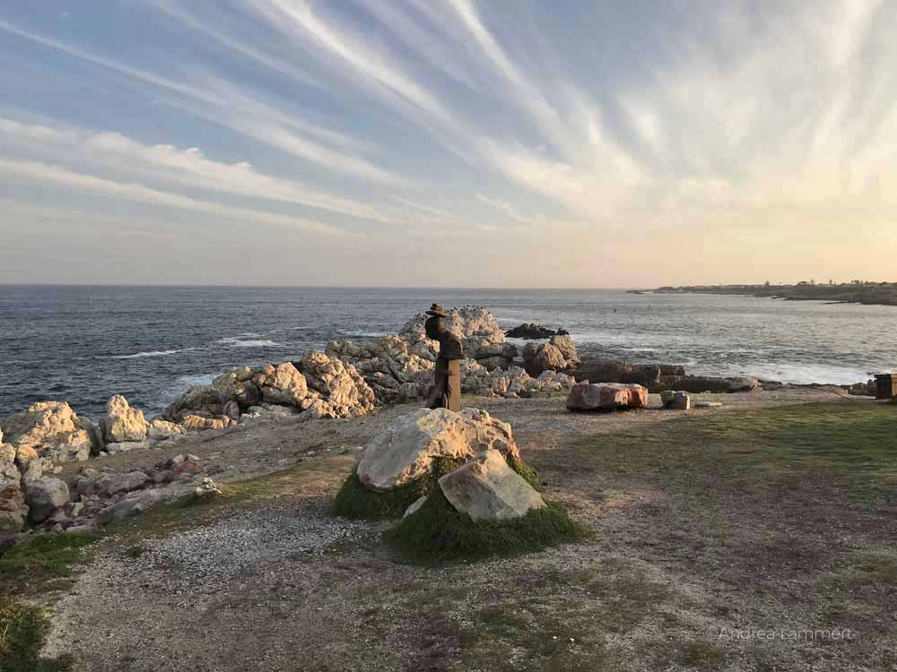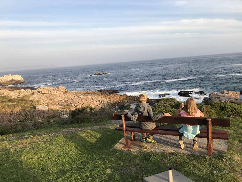Während meine Tochter noch mit Klippschliefer-Fangen beschäftigt war, setzte er sich zu seinem Großvater und mir auf die Bank und wir schauten einfach aufs Meer. Nirgendwo sonst hatte ich das Gefühl in Südafrika, dass ich ewig am Meer sitzen könnte, um einfach nur Himmel und Wasser anzuschauen. Woran das liegt, weiß ich nicht, aber dieser Ort hatte auf mich eben etwas ganz Bezauberndes.