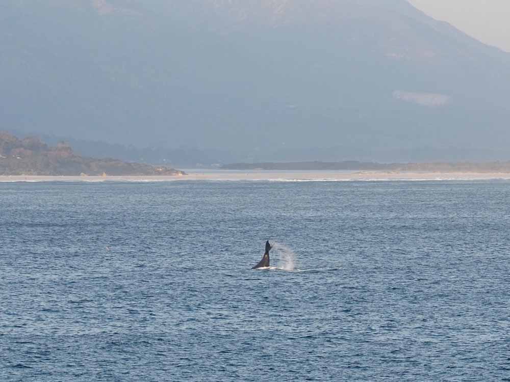 Mein erster Gedanke war: „Das kann nicht sein.“ Es wird eine optische Täuschung gewesen sein. Oder ein U-Boot. Doch da ist es schon wieder. Eindeutig hüpft da etwas aus dem Wasser, schwingt elegant seine Flosse und taucht wieder ein. Ein Wal. Tatsächlich. Ich schaue auf meine Familie, die genauso erstaunt aussieht wie ich. „Habt Ihr das auch gesehen?“ habe ich kaum Zeit zu fragen, als wir es alle sehen: Es ist nicht ein, es sind zwei Wale. Ganz dicht an der Küste schwimmen sie, stoßen ab und zu Wasserfontainen in die Luft und klatschen ihre Flossen auf die Wellen. „Mutter und Tochter“, informiert uns die Frau neben uns. Wir brauchen noch nicht einmal ein Fernglas.