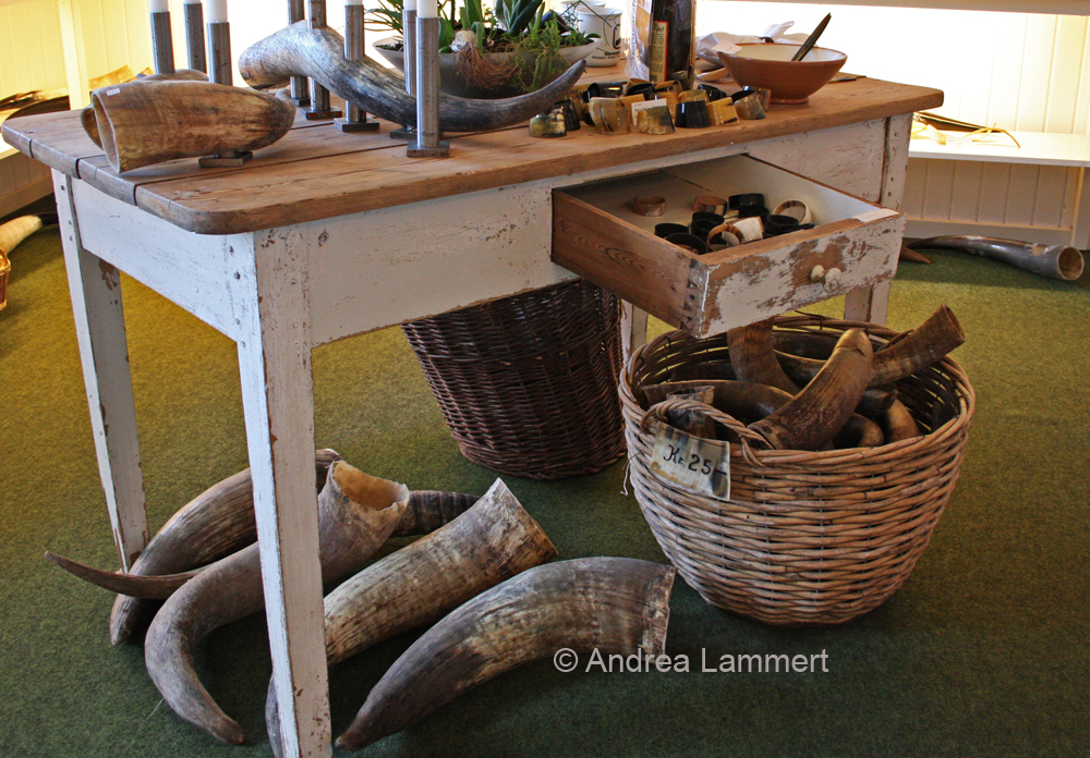 Dass die Hornwarenschnitzerei überhaupt wieder nach Dänemark kam, ist übrigens auf einem Unfall zurückzuführen. Anfang des 19. Jahrhunderts kam ein dänischer Marinesoldat in englische Kriegsgefangenschaft. Dort lernte er die Kunst, aus Kuhhörnern Löffel zu schnitzen und brachte sie nach Skandinavien. Für die Bauern war es eine gute Zusatzeinnahme, denn die Felder im sandigen Heideboden in Jütlands Bøvlingbjerg warfen nicht genügend Ertrag ab.