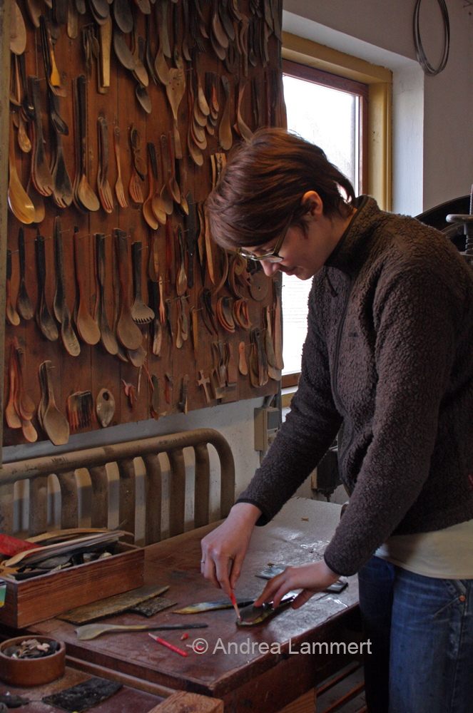 Mit der Hornwarenfabrik setzt sie eine uralte Tradition fort. „Schon vor 3000 Jahren haben die Menschen aus den Hörnern der Kühe Haarspangen oder Löffel geschnitzt“, weiß Sara Frølund. Immerhin war der Löffel auf dem Land lange das einzige Besteckteil, die Bauern wischten ihn nach der Mahlzeit an der Hose ab und steckten ihn wieder ein. Doch bald wurde es schicker, vom silbernen oder zumindest vom Edelstahllöffel zu essen und Horn verschwand von aus den Besteckkästen.