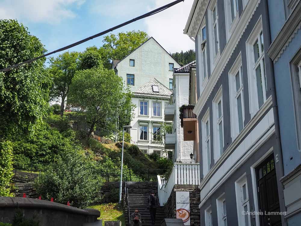 Dieses Viertel gehörte für mich zu den Highlights der Stadt. Keiner der Insider-Tipps für Bergen, aber das muss ja auch nicht immer sein. Im Stadtteil Sandviken lässt sich Bergens altes Gesicht nachempfinden, eine Ansammlung alter Holzhäusern, die im Reihenhausstil dicht an dicht gebaut wurden. Wer dort hindurchspaziert, fühlt sich wie in einer alten Filmkulisse. Die Vorgärten sind oftmals herrlich bepflanzt, die Fensterbänke wunderschön dekoriert, es ist ein Augenschmaus.