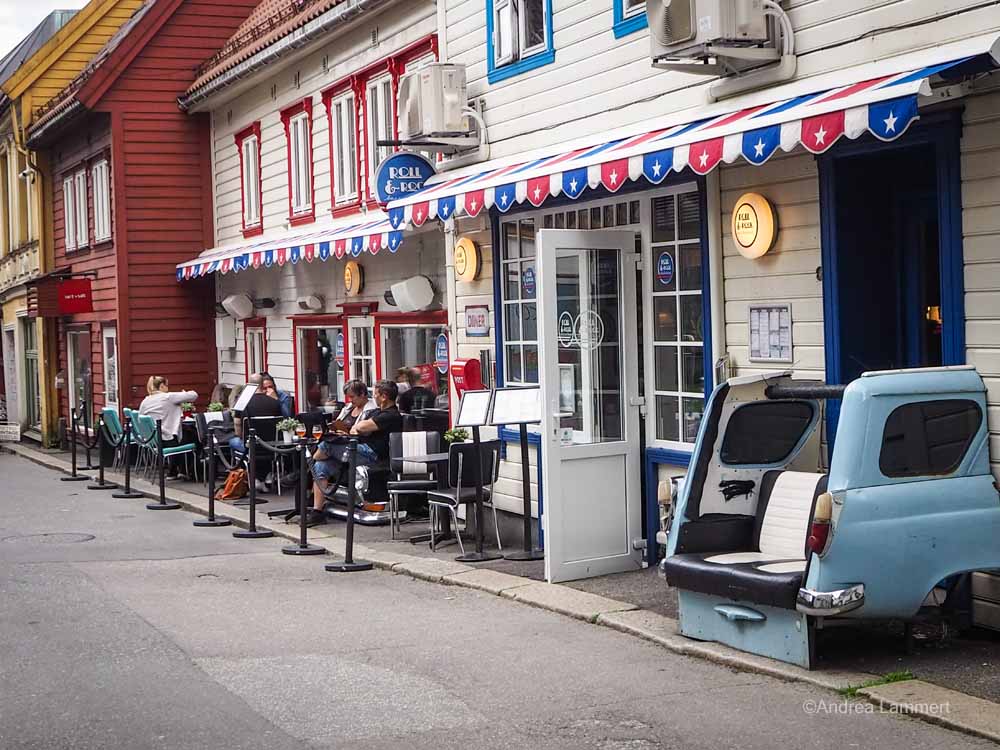 Wir haben uns sofort in das Roll & Rock Bar and Diner in der Skostredet verliebt. Veggie-Burger, Milchshake und Pommes – und anschließend rollten wir zurück zum Busbahnhof. Man sitzt dort toll draußen zwischen witzigen, anderen Menschen und kann prima Passenten gucken, die durch die Straße spazieren.