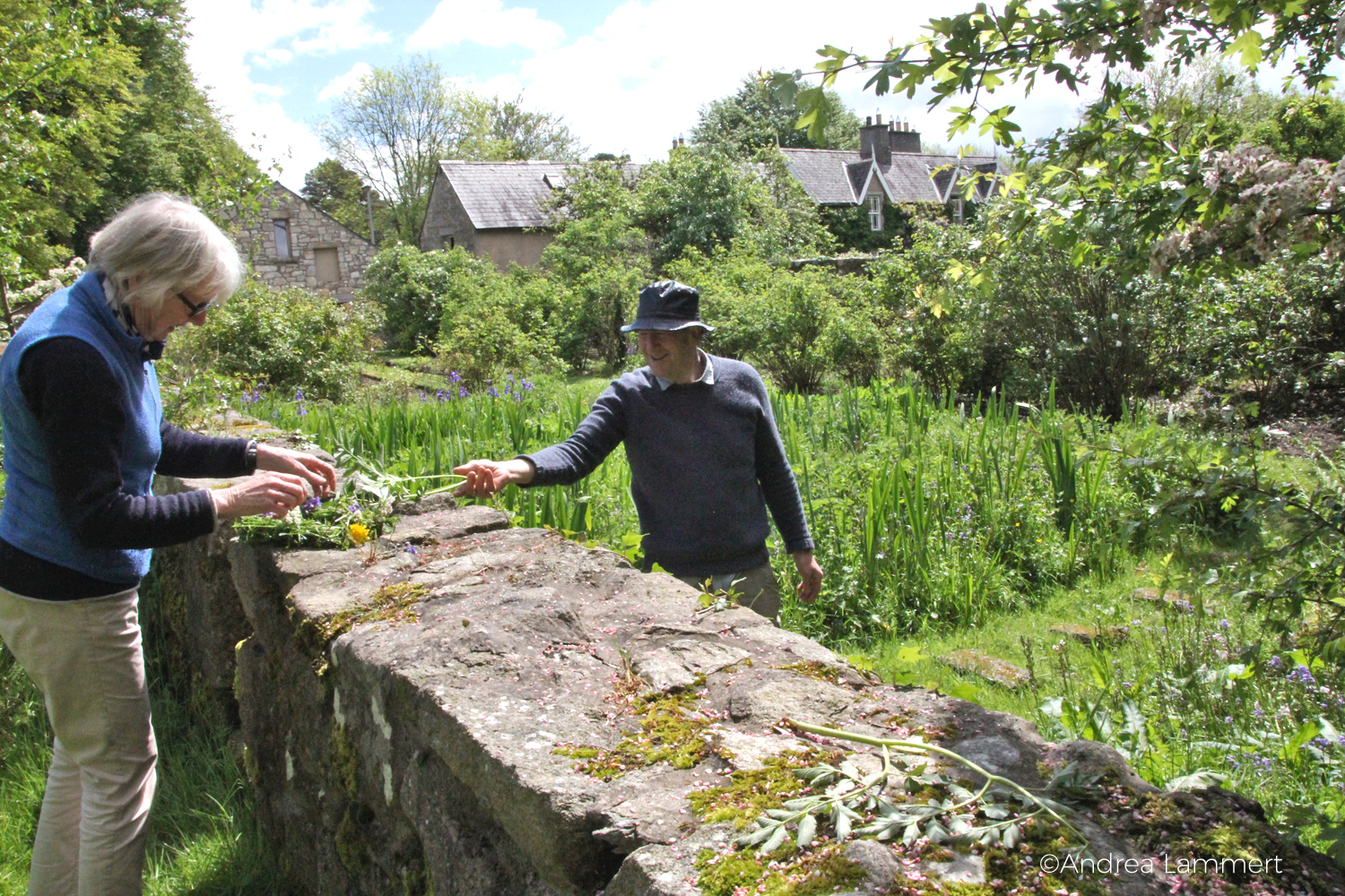 Die Wedel des Straussenfarns brät sie im Frühjahr in Butter und freut sich, dass sie ein wenig nach Spargel schmecken. Giersch nutzt sie natürlich auch, als Spinat oder als Limonade und die Blütenblätter des Borrest friert sie in Eiswürfeln ein und freut sich über hübsche Dekoration der Getränke. Den Bärlauch erntet sie fast den ganzen Winter über und dann kommen wir zum Pestwurz, dessen Blätter sich nicht nur hervorragend als Toiltettenpapier eignen sollen, sondern vor allem als Transportbehälter für die Butter gedient haben, als es noch kein Butterpapier oder Plastik gab. „Die Holunderblüten ernte ich immer mittags, da ist ihr Zuckergehalt am höchsten. Dann mache ich herrliche Puffer daraus oder trockne sie für den Tee.“ Mary White ist ein Phänomen voller Tipps.