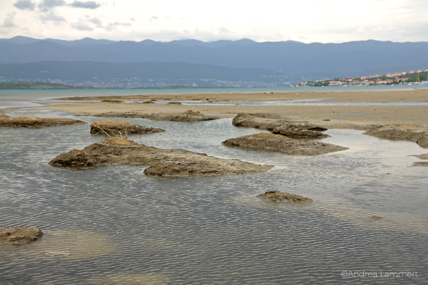 Unsere Tour führt uns zur Bucht von Soline. Zwischen Cizici und Soline liegt ein ganz besonderes Stück Ufer. „Hierher kommen viele Menschen mit Gelenkschmerzen und Knochenerkrankungen, denn in den kleinen Becken sammelt sich Peloid“, erklärt Petra Vrtodusic und zeigt auf die kleinen Pfützen am breiten Strand. Was von der Mole aus so fest ausgesehen hatte, erweist sich beim Betreten als wabbeliger Schlick.
