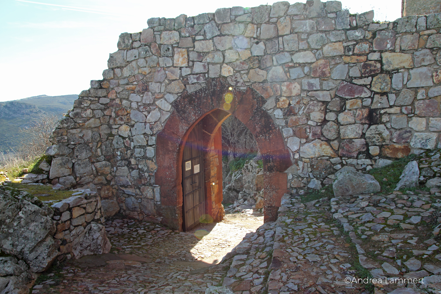 Wir machten uns auf nach oben – und genossen immer wieder diesen wunderbaren Ausblick auf das weite Land. Von hier hatte man eine strategisch günstige Position, die Region zu bewachen, denn der Blick war unglaublich weit. Schafsglocken bimmelten im Tal, dazu mischte sich ein Blöken – die Milch der Tiere wird später zum berühmten Manchego-Käse verarbeitet, der, wie ich finde, super zum hiesigen Wein passt. Übrigens ist die Region Kastilien La Mancha ja größtes Weinanbaugebiet der Welt.