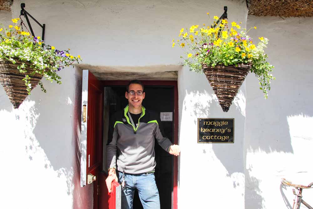 Doch das muss warten, denn wir drehen erst eine Runde durch die irische Geschichte. Durch das Haus von Maggie Heaney. Maggie’s Cottage stammt aus dem 18. Jahrhundert und wurde zum Heimatmuseum umgebaut. Ein eindrucksvolles Zeugnis des irischen Lebens, wo damals die Torfbriketts in den offenen Kaminen glühten und die Buttermilch von Hand gerührt wurde. Was so aussieht, als stamme es aus dem Mittelalter, ist erst im Jahr 1966 als Wohnhaus aufgegeben worden.
