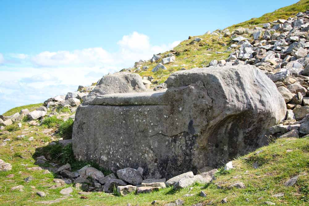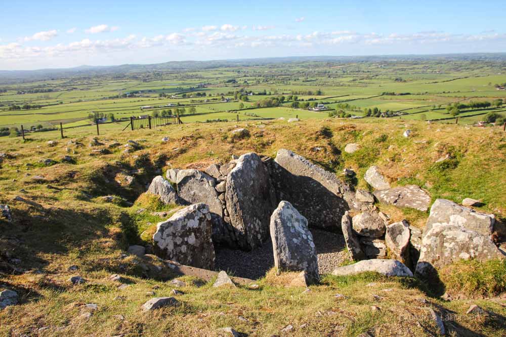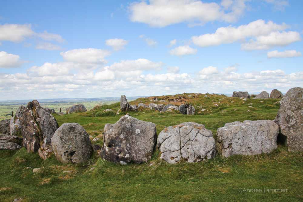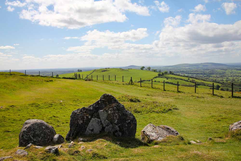 Wo andere Landschaften Maulwurfshügel haben, sammeln sich hier Steinkreise. Doch Guide Fechin weiht mich ersteinmal in etwas anderes ein: „Von hier oben hast du eine 360-Grad-Sicht auf Irland“, erklärt er stolz. Dass die Hügel nur knapp 280 Meter (969 Foot) über Meeresspiegel liegen, vermutet man nicht, sie wirken größer und das Panorama ist einmalig.