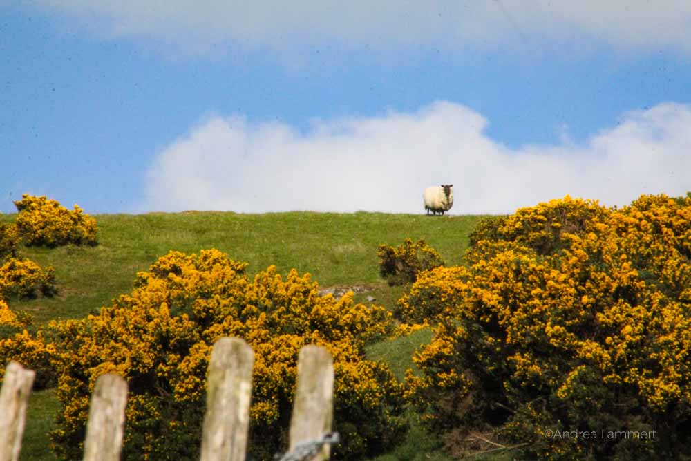 Durch blühende Ginsterhecken und auf einspurigen Straßen, die mein kleines Mietauto fast komplett ausfüllt. Was ist, wenn jemand entgegen kommt? Es kommt niemand entgegen. Ich glaube schon fast, dass hier niemand wohnt, in dieser Gegend Irlands.