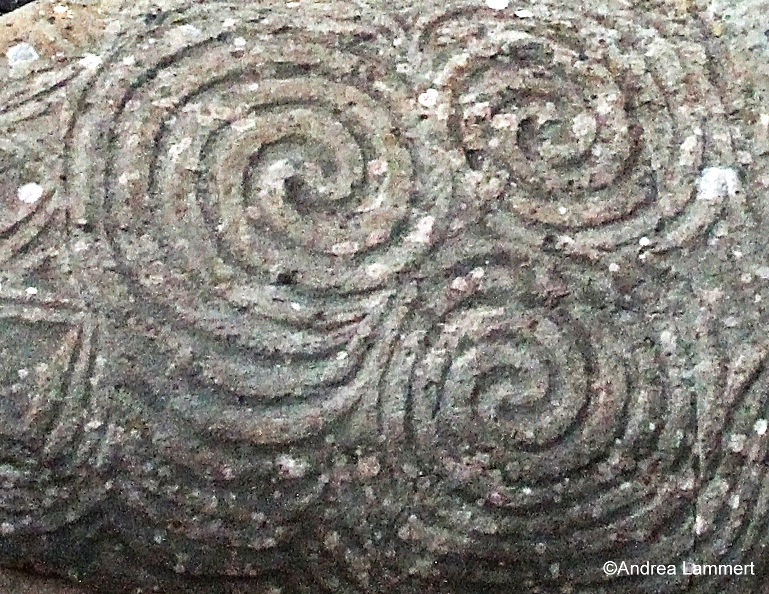 Häufig taucht das Symbol der Triskehle in den Schnitzereien der Steine auf. Die Triskehle als typische Dreierspirale lässt viele Deutungen zu. Sie steht für die Dreiheit von Körper, Geist und Seele, aber auch für die drei Lebensphasen Geburt, Leben und Tod, im schamanischen für die drei Welten, die sichtbare, aber auch die obere und die untere Welt, vielleicht aber auch für Sein, Werden und Vergehen. Zudem ehrt die Spirale die Göttinnen-Dreiheit Brigid, Danu und Anu. Die Spirale steht immer für Wachstum und Erweiterung sowie für das Vorwärtsstreben der Dinge.