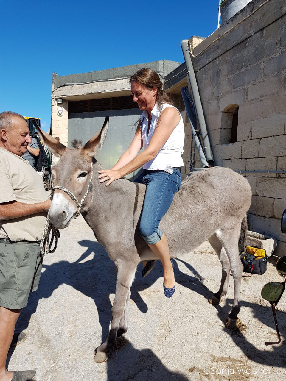 Hunde sonnen sich auf dem Hof, Kühe stehen im Schatten und Mario holt seinen Esel raus, damit wir ihn streicheln können. Auf einmal sagt er zu mir: „Get up“. Ich? Auf den Esel? ich weiß nicht. Doch er wiederholt es eindringlicher, und Gastfreundschaft will ich nicht im Wege stehen, also setze ich mich auf das Tier. Dem Esel ist ebenso unwohl wie mir, aber auch er beugt sich seinem Herrchen. Als die Hühner gackernd über den Hof laufen, steige ich lieber ab. Und bin ganz baff, wie man nur eine halbe Stunde Autofahrt von Valletta entfernt ein derart einfaches, bäuerliches Leben führen kann.
