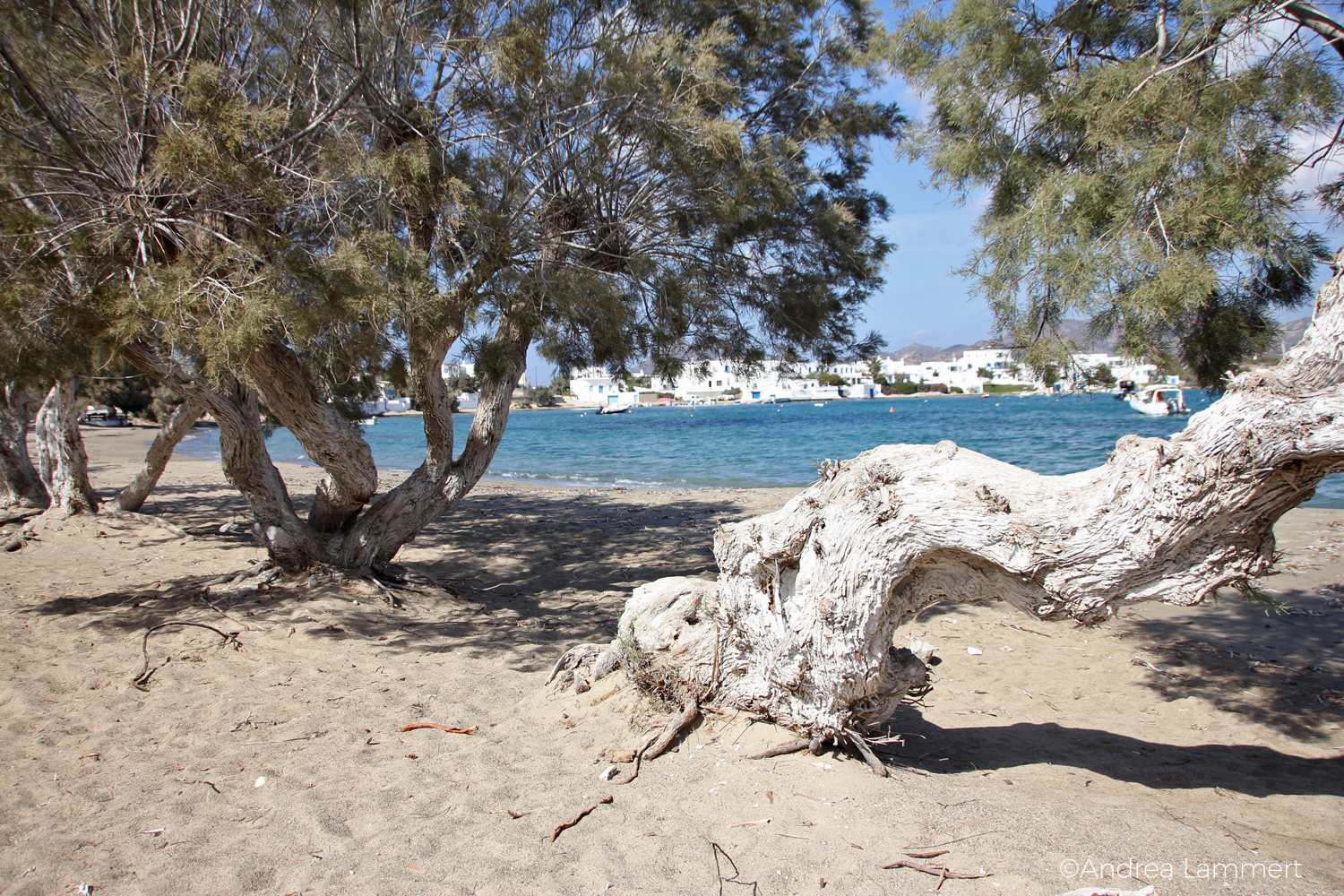 Ganz im Westen der Insel, nördlich von Plaka befindet sich eine kleine Bucht, die wohl auch zur Saison nicht so ganz voll sein kann. Zu abgelegen, zu wenig erschlossen, eine kleine Strandbar verkauft Erfrischungen und Kaffee, ansonsten hat man den ganzen Strand für sich allein. Jedenfalls erging es uns im Oktober so. Besonders schön: Die kleine Hütte direkt am Strand, die einst ein Boot war. Fazit: Ein hübsches Plätzen, für alle, die es gern etwas ruhiger haben.