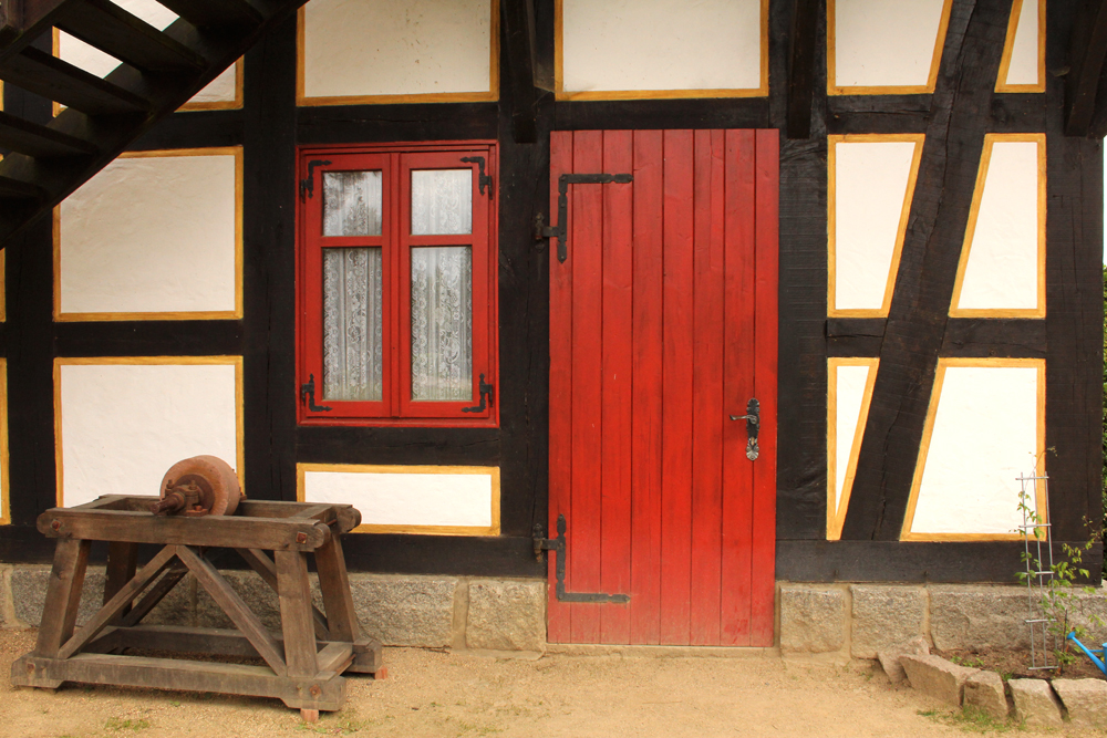 Auf dem kleinen Dorfplatz in der Mitte des Geländes tobt nicht nur der Nachwuchs, auch die Eltern lernen wieder etwas: Dort hängt ganz prominent ein großer Holzkäfig über dem Brunnen: die Bäckertaufe. Damit wurde im Mittelalter der Bäcker in den Brunnen getaucht, wenn er schlecht gebacken hat – zu kleine Brote oder Löcher im Teig. Die Kinder finden solche Schauergeschichten immer spannend. Mich zieht es eher in das kuschelige Restaurant, im Steinofen werden hier leckere Brote, Hefezöpfe und ein herrlicher Butterkuchen gebacken – irgendwie märchenhaft, wenn die Flammen des Ofens noch knistern und der Bäcker mit einem langen Schober die Bleche aus dem Feuer holt. Hier stimmt auch der Preis – 2 Euro für ein riesiges Stück Kuchen ist völlig in Ordnung.