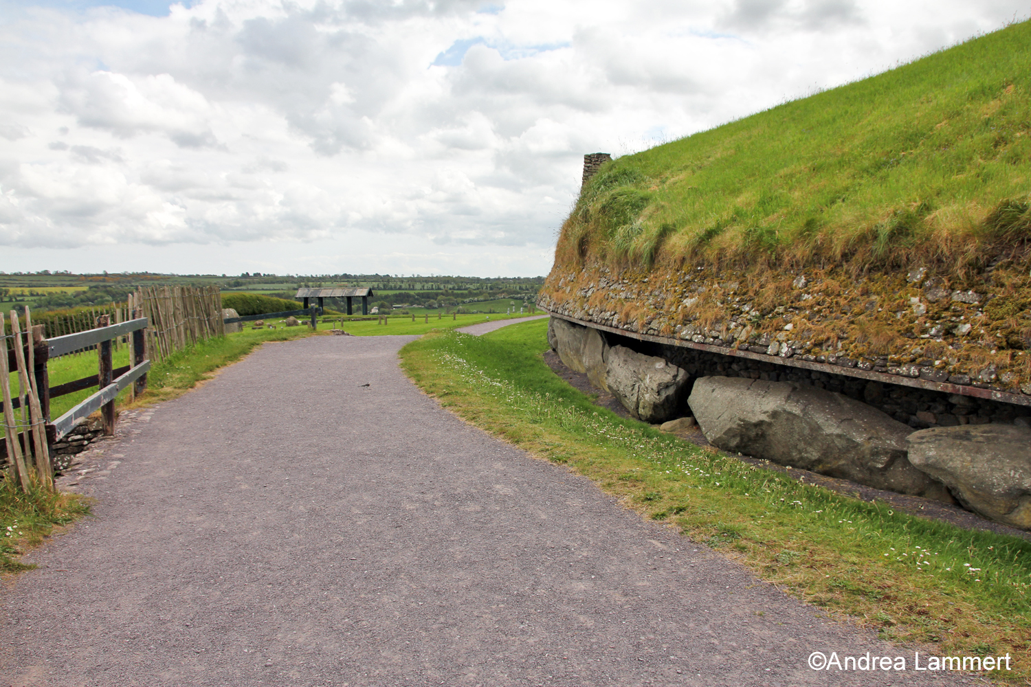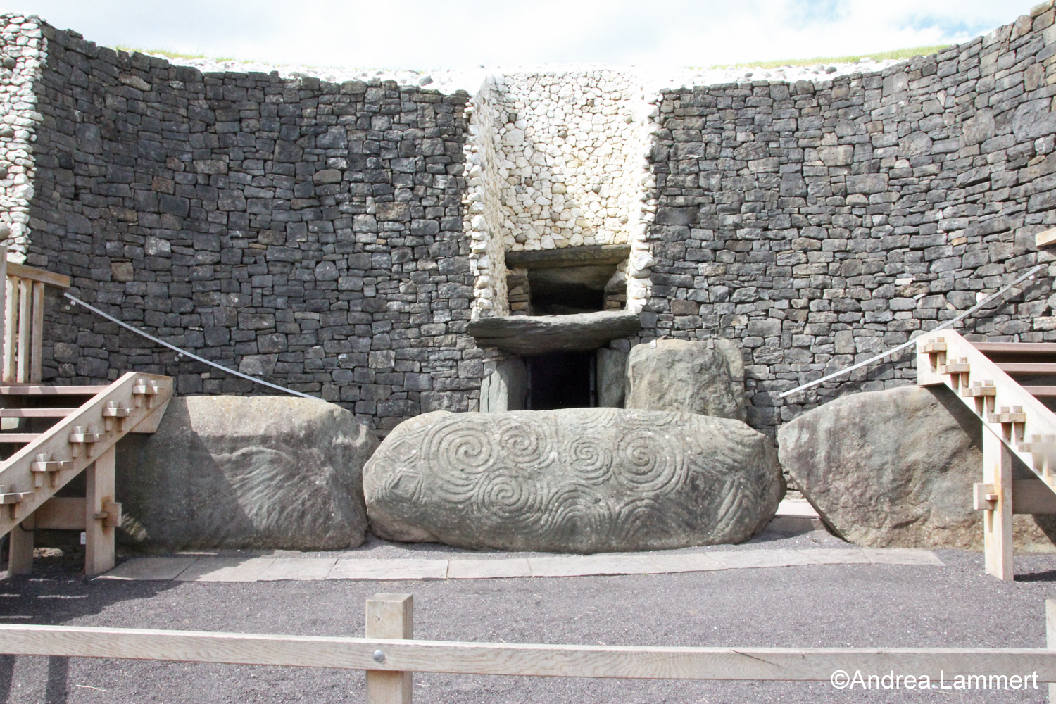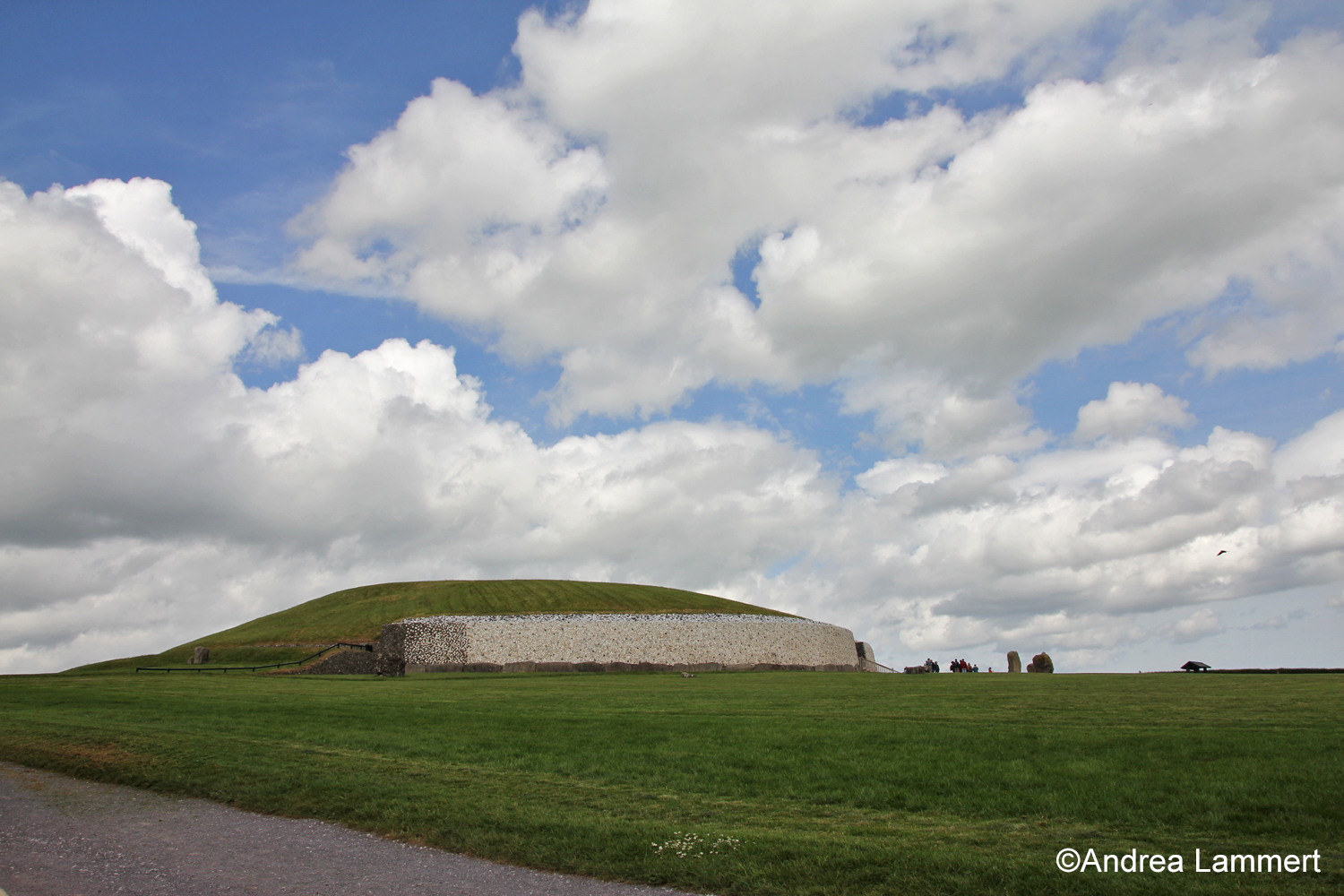 Der Besuch in Newgrange streng reglementiert, nur 20 Menschen finden in der Grabkammer Platz, die wie ein Iglu aus großen Felsblöcken geformt ist. Die Anlage ist älter als die Pyramiden in Ägypten und sogar als Stonehenge, denn sie wurde vor 5000 Jahren errichtet. Und sie sieht aus, wie es nur mystische Anlagen in Irland können: Knallgrün wächst das Gras aus dem igluförmigen Gebäude, das wie ein Ufo, errichtet aus Steinen und Erde, mit der Wiese verwachsen zu sein scheint. Inmitten einer Landschaft, in der es weit und breit nur Weiden und Bäume zu sehen gibt, weder Häuser noch Städte.