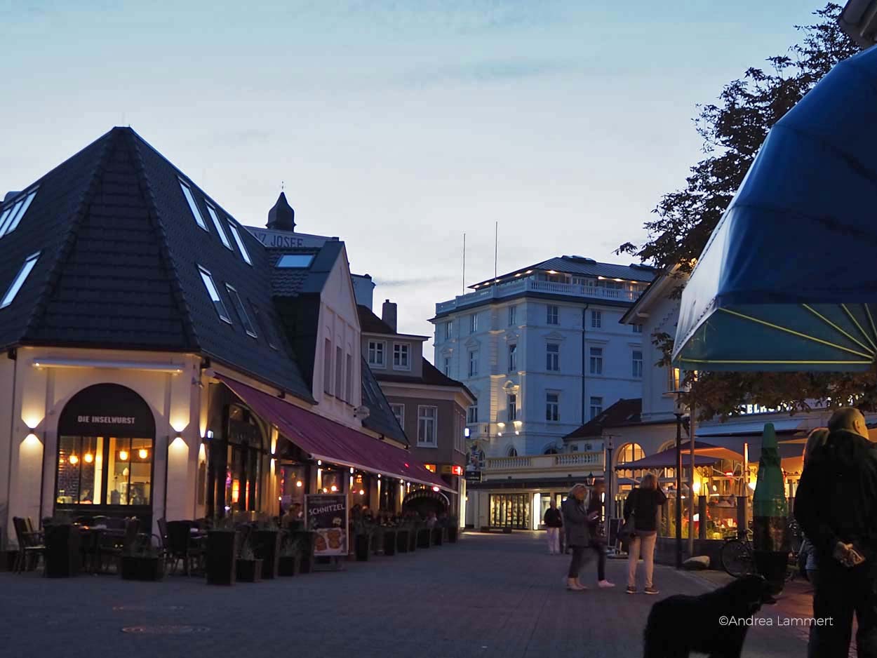Wir gehen die Promenade entlang, finden gleich die Milchbar, biegen ab ins Dorf und suchen uns etwas zu essen, denn die Nordseeluft macht hungig. Das Restaurant Friedrich liegt auf unserem Weg, es ist ganz modern aufgemacht und das Essen schmeckt wirklich gut – sowohl die Tagliatelle, als auch das Fish and Chips, das es auf der Insel nun überall gibt. Hier würde ich nochmal hingehen, es hat mir gut gefallen.